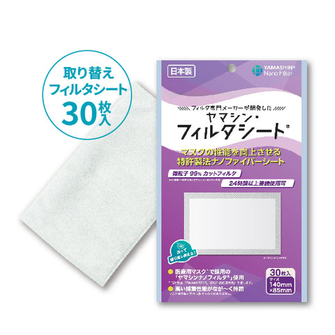 ろ材として最も細かい「ナノファイバー」を使用し、フィルタメーカーとして、トップクラスの技術を持つヤマシンが作るマスク用フィルタシートとフィルタマスクが、微細なホコリ、花粉、ウイルス飛沫まで防いでくれます。